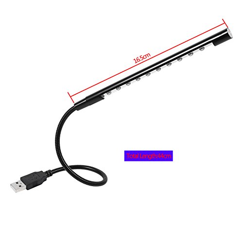 Zerodis Flessibile Mini USB LED Light 10 Led Lampada da lettura Torcia per computer portatile PC Tastiera(Nero)