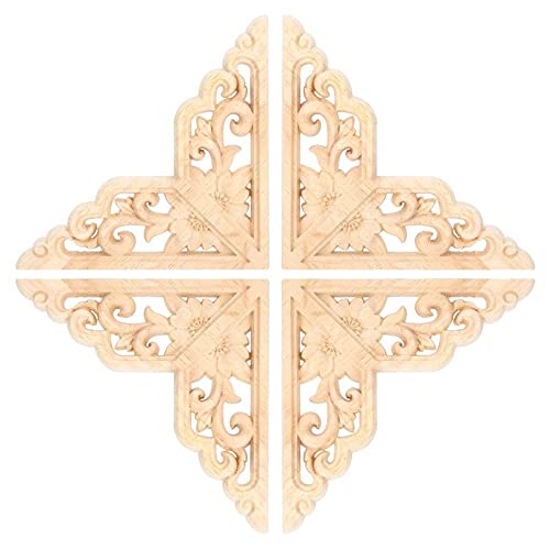 Zerodis 4 Pezzi in Legno intarsiato in locazione di Applique, Intaglio in Legno, Artigianato in Legno, Porta del Letto Angolo Decalcomania Decorazione Arredamento per la casa