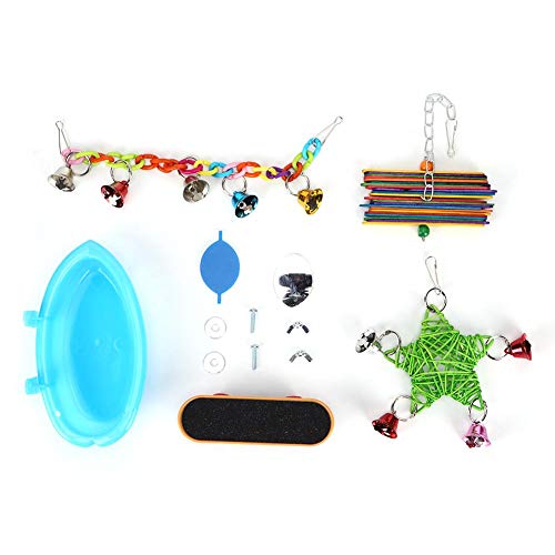 【Giocattoli in legno per pappagalli】 Include: 1 x intreccio di paglia pentagramma, 1 x skateboard per uccelli, 1 x vasca da bagno per uccelli, 2 x patch per viti, 2 x viti, 2 x tenditori a vite, 1 x ciondolo rotondo colorato, 1 x ciondolo a campana, per soddisfare diverse esigenze di uccelli.