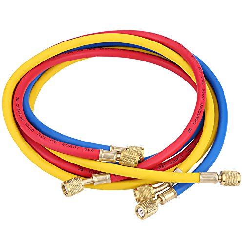 Zerone - Condizionatore di aria condizionata per auto, kit di misuratore e condizionatore A/C con tubi adattatori per R134A 5FT sistema di condizionamento auto mobile