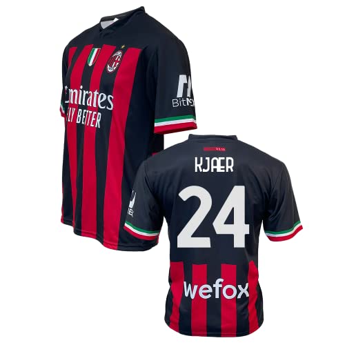 ZeroPlayer Maglia Milan Personalizzata con Nome e Numero di Simon Kjaer 24 Home 2022 2023 Replica Ufficiale, Rosso, Nero, 100% Poliestere, Medium