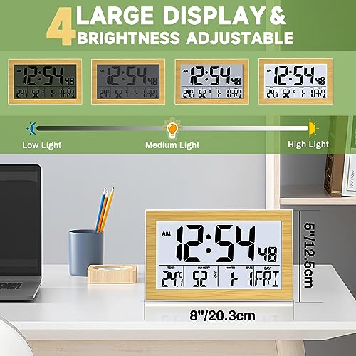 Zerotop Sveglia Digitale Orologio da Parete Digitale con Ampio Display con Display LCD Retroilluminato Temperatura Umidità 2 Sveglie Snooze, Luminosità Regolabile da Comodino Orologio da Tavolo