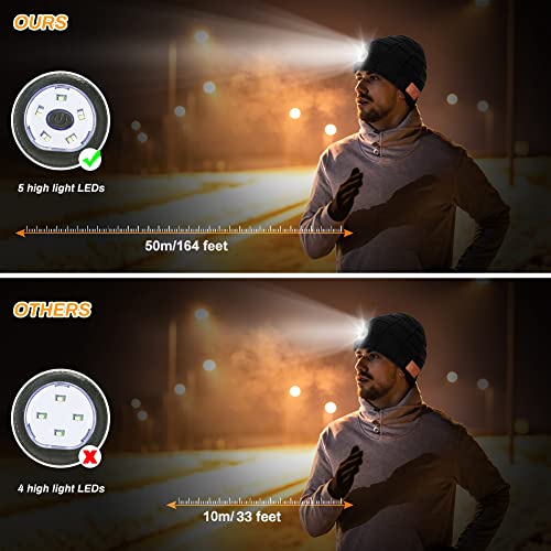 Zerotop Wireless Bluetooth V5.0 Beanie con Lampada Frontale a LED Ricaricabile Lavabile Unisex Parlare a Mani Libere Musica Cappello Sportivo per Uomo Donna Corsa Sci Escursionismo Campeggio Ciclismo