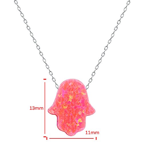 ZeSen Jewelry Opale di fuoco della mano di Hamsa opale ciondolo opale multi colore 925 collana in argento (2) Bright Pink