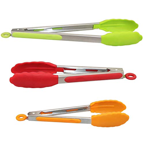 ZesGood, pinze in acciaio inossidabile resistente al calore, per barbecue, insalate, forno, buffet e per cucinare o servire, confezione da 3 pezzi