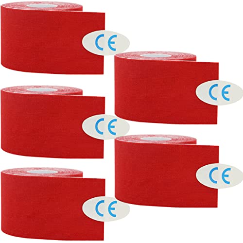 ZESLIV 5 Rotoli Tape Kinesiologico rosso 3,8cmx5m Nastro Kinesiologico impermeabile ed elastico Kinesio Tape Tape Kinesiologico Muscolare Cerotto Kinesiology Tape
