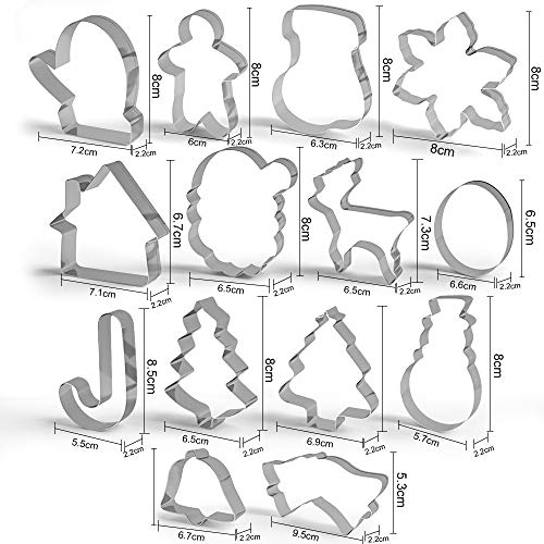 ZesNice 14 Pezzi Natale Formine per Biscotti Acciaio Inox Stampi Biscotti DIY Decorazioni Dolci Biscotti