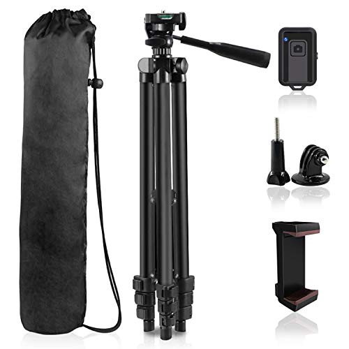 Zetong Treppiede per telefono 50" Treppiede per video da viaggio regolabile con supporto per telefono compatibile con treppiede per cellulare, action camera, con otturatore remoto wireless (nero)