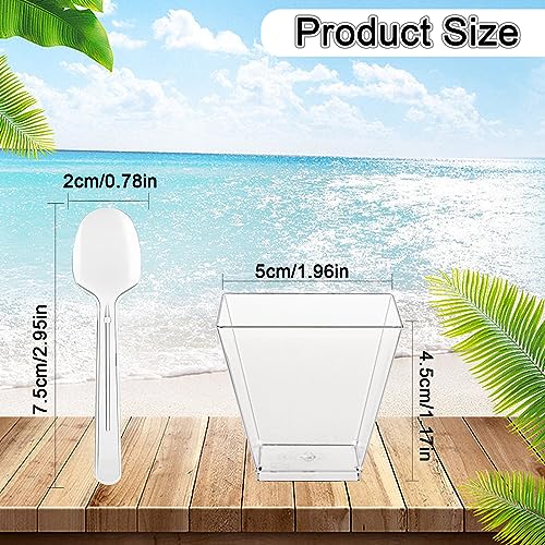 【Set di Tazze da Dessert】Include 60 bicchieri per dolci e 100 cucchiai. Dimensioni dell'apertura del bicchiere: 1,9*1,9 pollici, altezza: 1,7 pollici, dimensioni della base del bicchiere: 1,1*1,1 pollici, capacità: 58 ml. Soddisfa le esigenze di qualsiasi evento o festa.