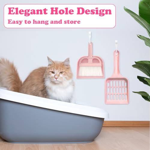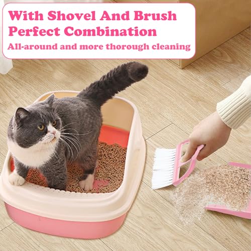 Zeuwets Paletta per Lettiera per Gatti, Paletta per Lettiera in Plastica, Paletta per Lettiera con Piccolo Set di Scope, Pala per Lettiera a Manico Lungo per Lettiere per Gatti (Rosa)