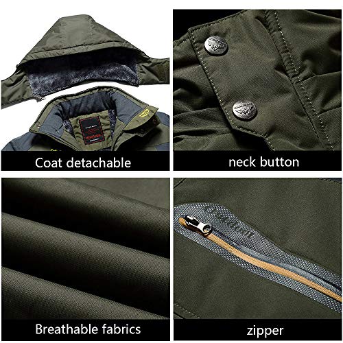 ZEVONDA Giacca Invernale da Sci - Giubbotto in Pile Impermeabile Antivento Cappotto con Cappuccio Staccabile, Verde (Fodera)/EU 56,Busto 53.5"(Etichetta 5XL)