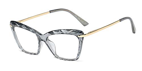 ZEVONDA Occhiali da Vista Donna - Classico Vintage Occhio di Gatto Crystal Lente Trasparente Moda Grandi Montatura, Grigio