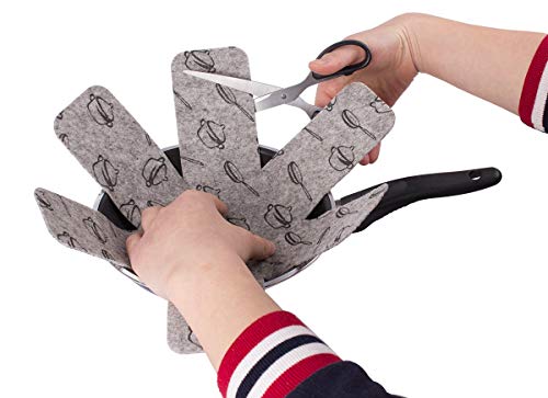 Versatilità: Perfetto per la nidificazione padelle e pentole in piccoli spazi e armadi. I nostri protettori pan possono essere facilmente tagliata per adattarsi perfettamente alle vostre pentole. Utilizzare su pentole - Gres - padelle - pentole - padelle - bakeware - vetro - ceramica, etc.