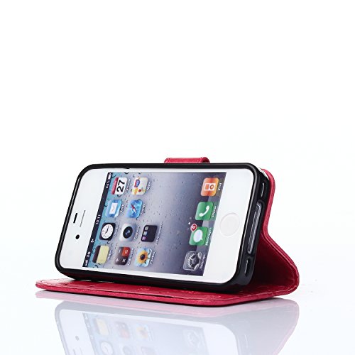 ZeWoo Folio Custodia in PU Pelle - R155 / Bel rosso - per Apple iPhone 4 4G 4S Custodia Protettiva
