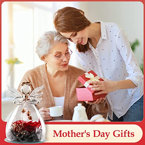 Zezirdas Rosa Eterna con Figurina Angelo, Fiore Eterni Rose Stabilizzate, Festa della Mamma Idee Regalo, Regalo di Anniversario San Valentino Compleanno Festa della Mamma per Mamma Nonna Fidanzata