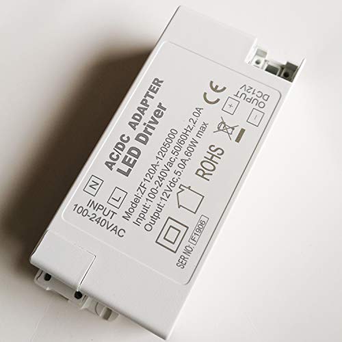 ZF120A-1205000 12VDC 60W AC/DC Adattatore LED Driver Bllasts per luci da soffitto Faretti Lampade fluorescenti sepolte, 2-Pack