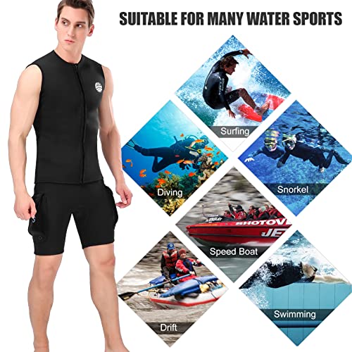 ZFFLYH Top Wetsuit Top Mens 3Mm Neoprene Gilet con Anteriore con Cerniera Gilet Immersioni per Nuoto, Immersioni Subacquee, Surf E Canoa,S