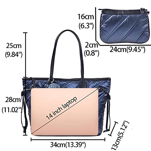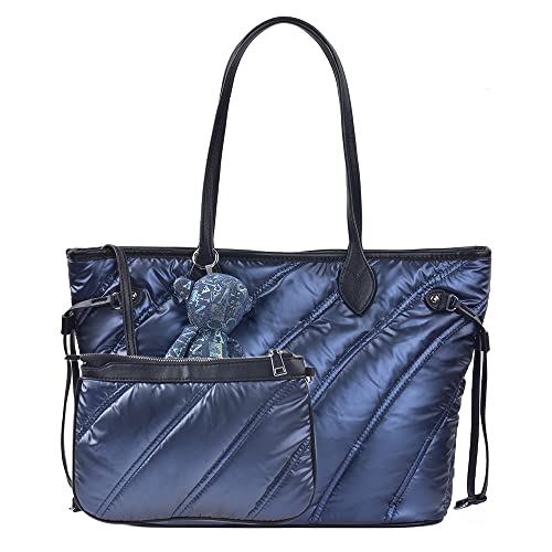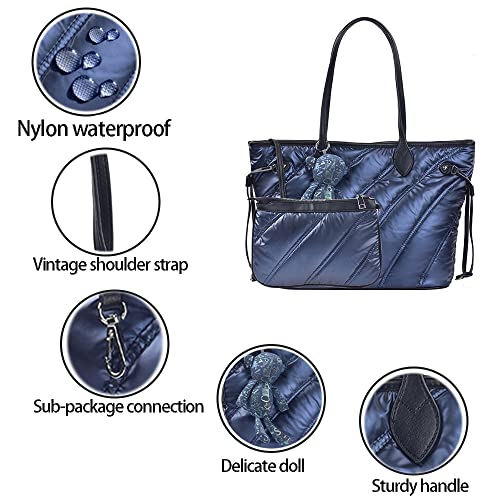 ZffXH Borsa a tracolla leggera trapuntata da donna, adatta ovunque con imbottitura in nylon morbido, grande capacità, grande, resistente, multi tasca, blu navy, Taglia unica