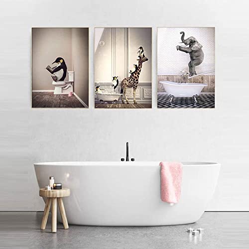 ZFTCN Stampe artistiche da parete, con animali nella vasca da bagno, in tela da bagno, poster minimalista per la casa, 4 pezzi, senza cornice (30 x 40 cm x 4 pezzi)