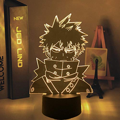 ZGSBT Lampada illusione 3D Luce notturna a LED Theme My Hero Academia Katsuki Bakugo Illuminazione decorativa per interni Ideale per una camera da letto Gadget Manga Regalo di compleanno