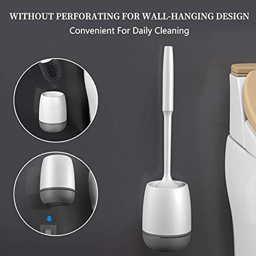 Zhajiang Spazzole e supporti per WC (2 pezzi) design moderno aggiornato, setole in silicone per bagno, scopino e Caddy Kit con guanti per la pulizia (bianco-grigio, montaggio a parete)