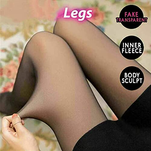Zhaojiexiaodian Gambe impeccabili Collant in Pile Caldo Traslucido Finto da Donna Caldo Foderato in Pile Pantaloni Leggings Elasticizzati Sottili (One Size, Nero 350g)