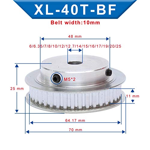 ZHaonan-Puleggia distribuzione, 40 Denti XL PULLEY TIMING 40T, Dimensione del foro 6-25 mm, pitch denti 5,08 mm, carrucola di alluminio Denti, larghezza 11 mm, per cinghia di temporizzazione XL 10mm X
