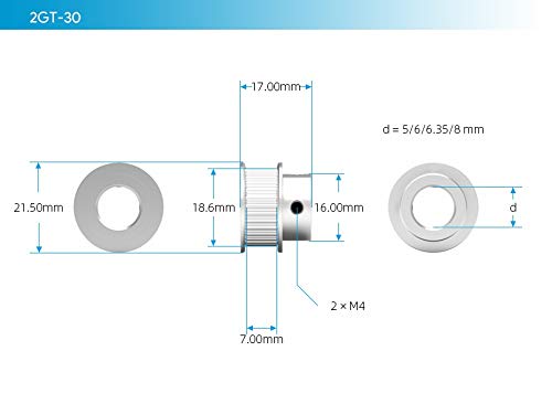 ZHaonan-Puleggia distribuzione, Pulley Timing GT2 2GT 30 Denti Denti, Foro 5/6 / 6.35 / 8mm, Ruote sincroni Larghezza 6 / 10mm Cintura, Parti della Stampante 3D, Dimensioni Accurate