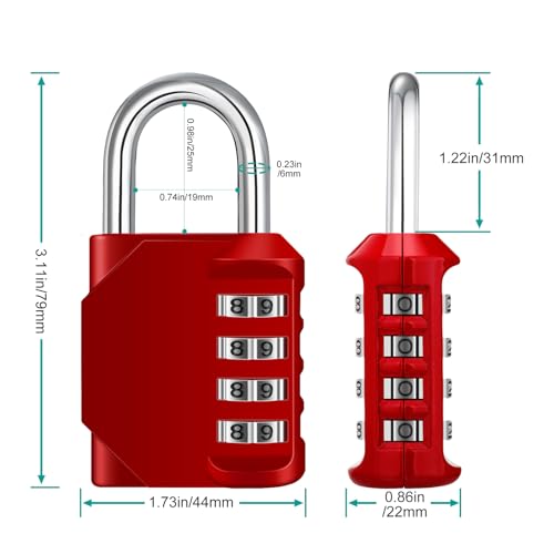 ZHEGE Lucchetto Armadietto Palestra, Lucchetti con Combinazione a 4 Cifre per Palestra e Scuola (Rosso e Rosso)