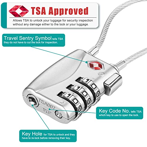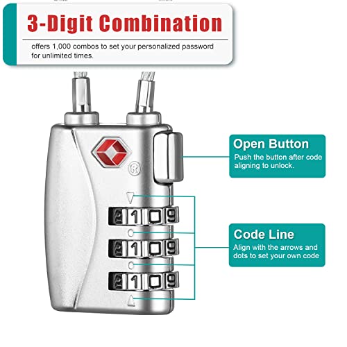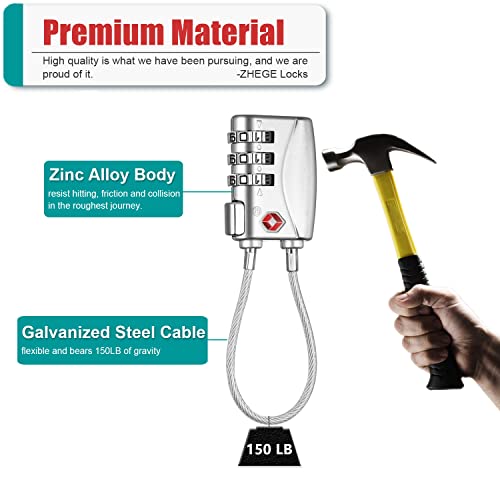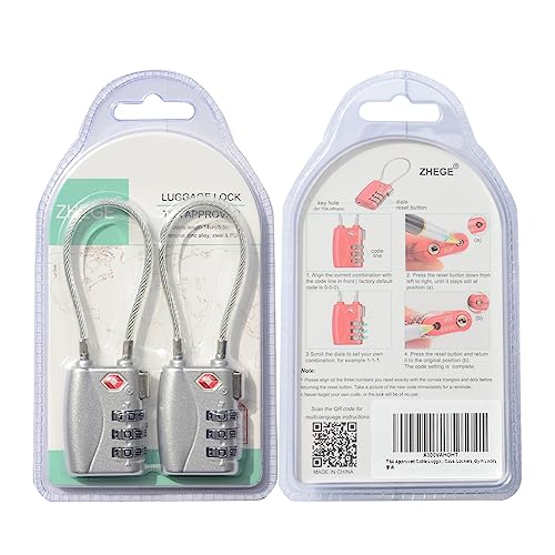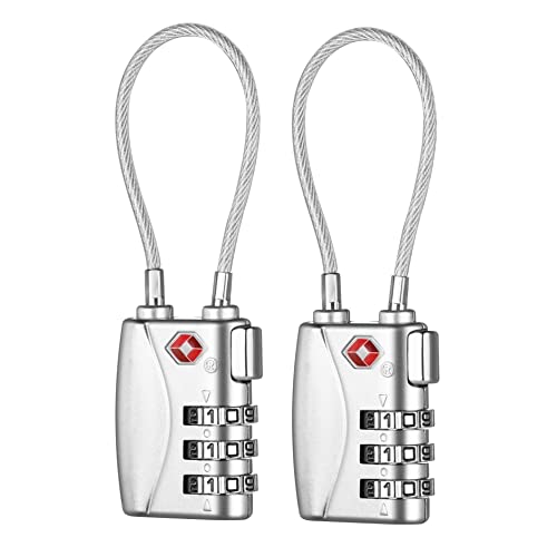 ZHEGE Lucchetto Valigia TSA, Lucchetti per Bagagli a 3 cifre, Omologati TSA, Lucchetti per cavi Flessibili da Viaggio, Lucchetto per Lucchetti da Palestra (argento, 2 Pezzi)