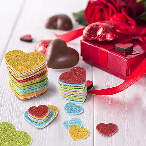 Zhehao 200 Pezzi Adesivi Glitter a Cuore Forma in Schiuma Adesivi Decalcomanie Autoadesive Colorato per San Nozze Forniture, Assortiti Taglie