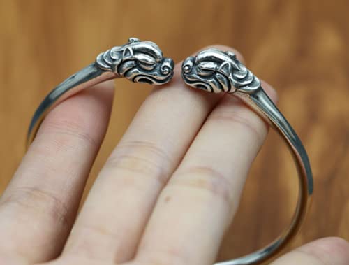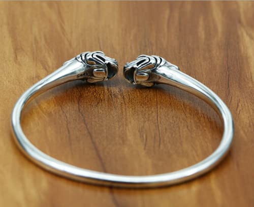 Zhenfa Bracelet, Vintage Vintage Doppio Cavallo Testa in Argento Braccialetto Aperto, Elegante e per Tutti da Indossare, Scatola di Gioielli, Ogni Regalo Regalo Moment-Lovely