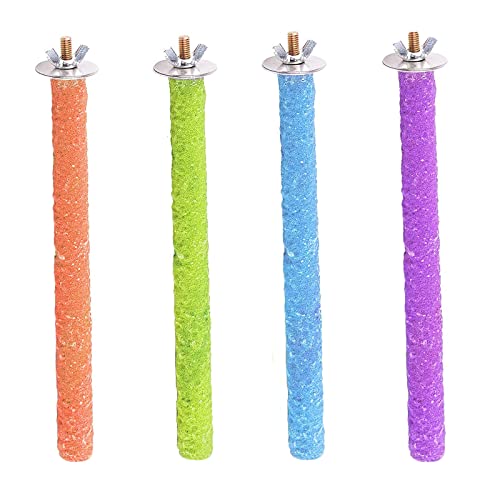 Design unico: Il posatoio per gabbia per uccelli con superficie ruvida offre un eccellente esercizio per i piedi, il rivestimento colorato e duro sulla superficie rende il becco e le unghie naturalmente tagliati, puoi tagliare le unghie degli uccelli in modo naturale senza tagliare le unghie.