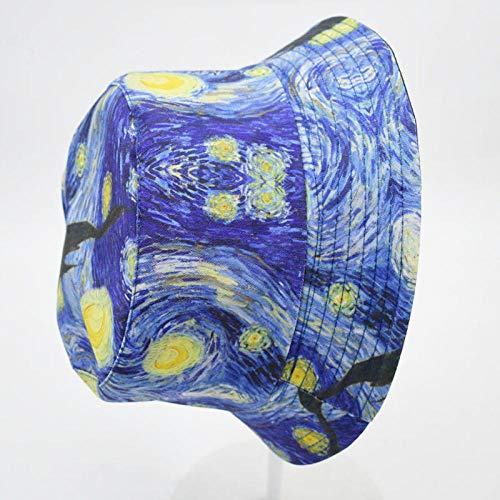 ZHENQIUFA Cappello da Pescatore Berretto Moda Notte Stellata Pittura Cappello da Pescatore Cappelli Reversibili in Cotone per Donna Uomo Hip Hop Panama-2