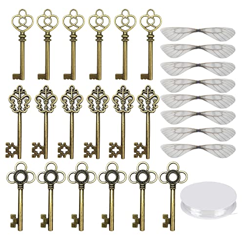 Zhenyuding Chiave Bronzo 30 Pezzi Chiavi Vintage Chiavi Antiche Bronzo Antico Vintage Chiavi Chiavi Vintage Ciondoli Bronzo Antico con 30 Pezzi Libellula Ala Charms per Gioielli Fai Da Te