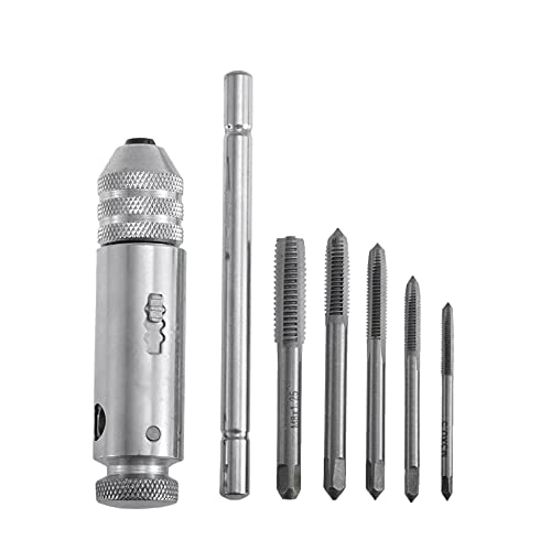 Zhenyuding Giramaschi ein Cricchetto 1 Pezzi Regolabile Tipo T Chiave a Cricchetto Chiave a Cricchetto per Mandrino Set di Maschi per Filettatura Metrica con 5 pezzi M3 M4 M5 M6 M8 Rubinetti