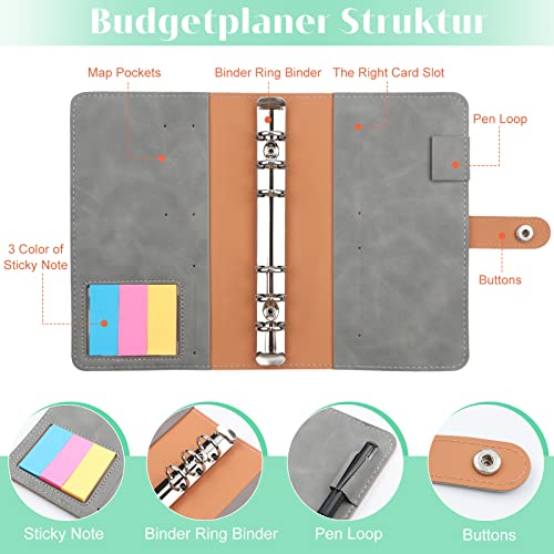 Zhiaek Agenda del Risparmio Budget Planner Raccoglitore di Bilancio A6 con 12 Buste Trasparenti 12 Fogli di Budget Adesivi ed Etichette Budget di Contanti Organizzatore Budget Binder (Grigio Chiaro)