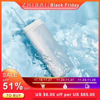 ZHIBAI USB Rechargeable Irrigator White Water Flosser Portable Dental Water Jet Water Tank IPX7 Waterproof Teeth Cleaner