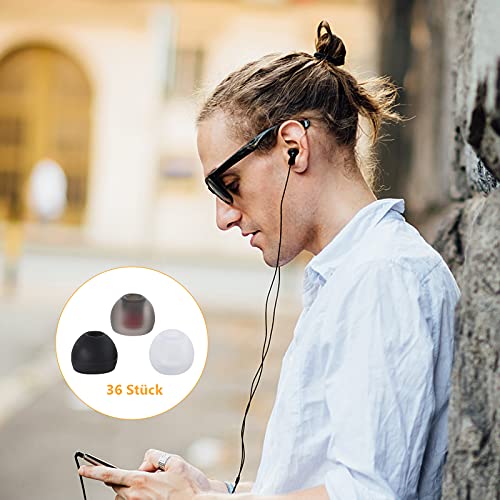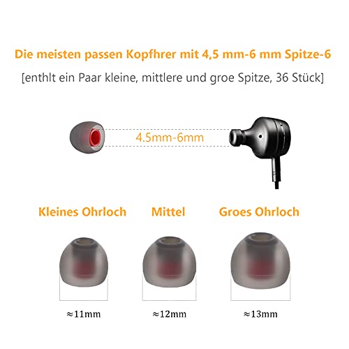 Punte per cuffie con cancellazione del rumore, incluse 18 paia di tappi in silicone. Questi tappi per le orecchie in memory foam hanno tre dimensioni, le grandi dimensioni sono di circa 13 mm, la dimensione media è di circa 12 mm, le piccole dimensioni sono di circa 11 mm, gli inserti in gomma per cuffie di diverse dimensioni possono soddisfare le esigenze della vostra famiglia e degli amici