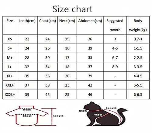 【Informazioni sulla taglia】 La taglia dei vestiti del gatto deve essere selezionata in base al peso dell'animale, alla misura del torace, del collo e della schiena. Conferma la taglia e acquista. I vestiti per gatti sono fatti a mano. Il panno a volte sarà esaurito, se questo è il caso Ti contatteremo in tempo, ti preghiamo di prestare attenzione al controllo della posta.