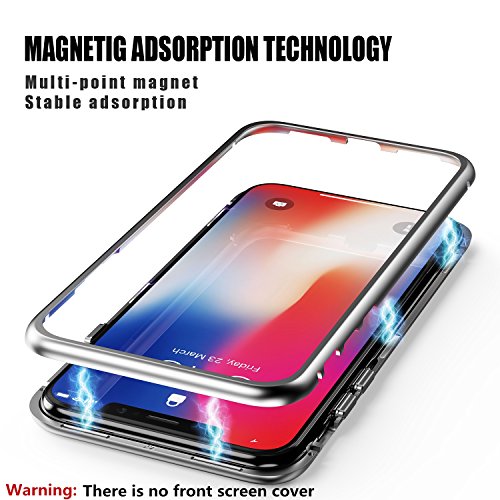 ZHIKE Custodia per iPhone X/XS, Custodia ad Assorbimento Magnetico Montatura in Metallo Ultra Sottile Vetro temperato con Cover Magnetica Integrata per Apple iPhone 10/X/XS (Bianco Trasparente)