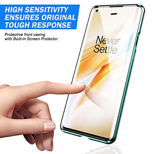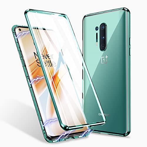 ZHIKE Custodia Oneplus 8 PRO, Custodia ad adsorbimento Magnetico Copertura Frontale e Posteriore in Vetro temperato a Schermo Intero Cover Flip Design Unico (Versione aggiornata-Verde)