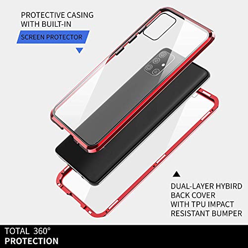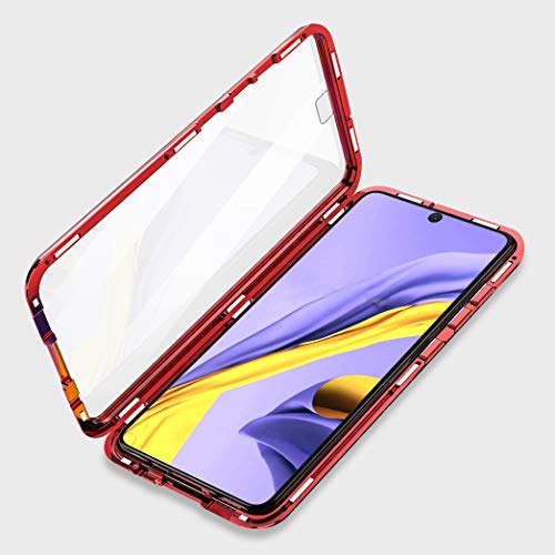 ZHIKE Custodia Samsung Galaxy S10 Lite/A91, struttura in metallo magnetico frontale e posteriore in vetro temperato Copertura a schermo intero Copertura flip monoblocco Design antiscivolo (Rosso)