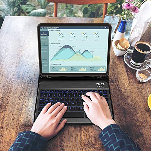 ZHIKE Spagna Custodia con Tastiera per iPad PRO 11 2020 (2a Generazione) / 2018 (1a Generazione), Tastiera Bluetooth Staccabile QWERTY, Portapenne, 7 Colori con Retroilluminazione
