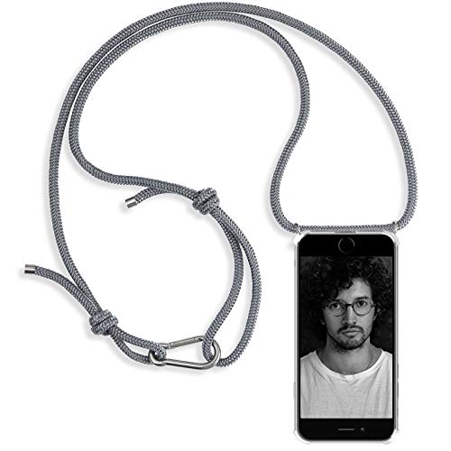 ZhinkArts Catena per cellulare compatibile con Apple iPhone 7/8/iPhone SE (2020) - Display da 4,7" - Custodia con cinturino - Custodia con catena da appendere in grigio con moschettone