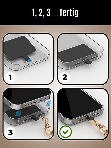 Pratico ed elegante: il cordino per cellulare incluso è il compagno perfetto per tutti. La piastrina integrata può essere utilizzata in diverse custodie per cellulare