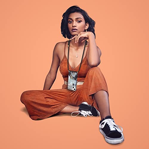 ZhinkArts Collana per cellulare compatibile con Apple iPhone 13 Pro - Display da 6,1" - Marmor Necklace (rimovibile) Custodia con cordino da appendere in nero - grigio