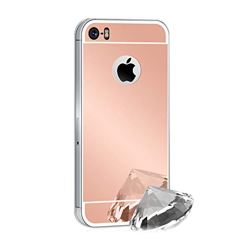 ZhinkArts - Cover in silicone per Apple iPhone 5 / 5s / SE, a specchio, colore: Rosa