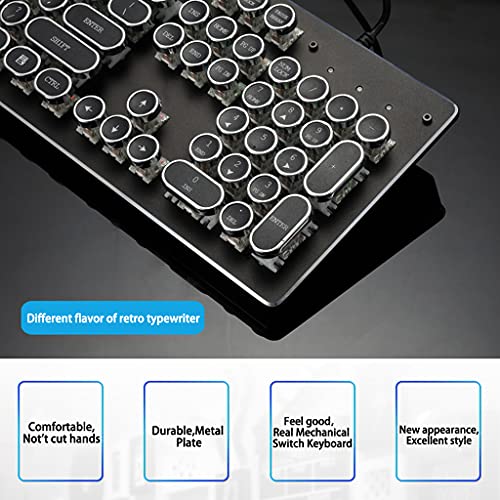 ZHINTE Tastiera da Gioco Meccanica,interruttori Blu,cablata USB,cablata Fredda Retro Macchina da Scrivere Punk a Vapore con Tasti Rotondi 104 Tasti