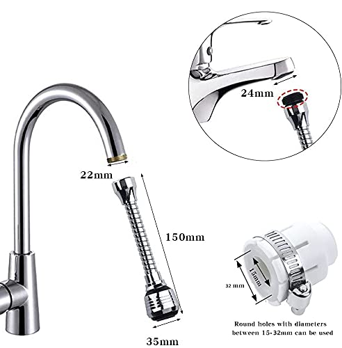 Zhioudz Aeratore del rubinetto,Prolunga Flessibile per Rubinetto,360 ° Girevole Filtro Regolabile,Filtro Risparmio Acqua,Prolunga Flessibile per Rubinetto,per La Maggior Rubinetti Cucina Bagn